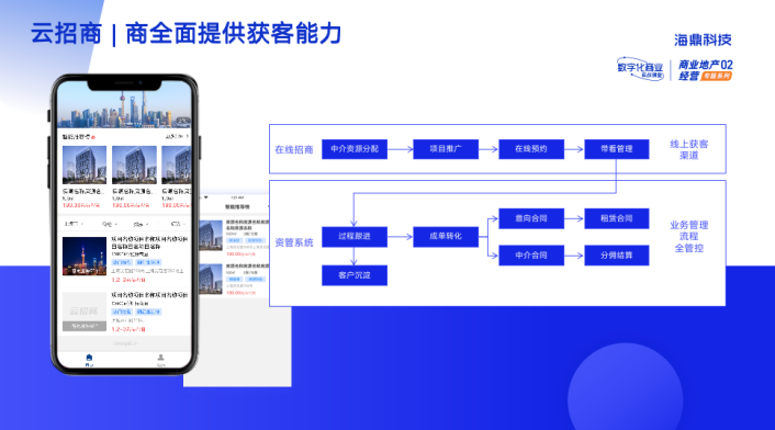 在運營方端,整個招商流程清晰簡潔,可以很好銜接資管系統(tǒng),在線招商線上平臺可作為招商資源的補充,全面提升招商獲客能力。