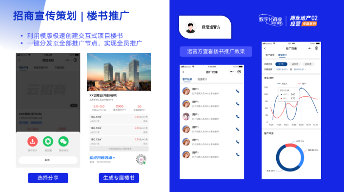 這個時候,在線招商平臺可以幫助運營方、中介、租戶搭建統(tǒng)一移動用戶平臺,通過充分利用公域資源,實現(xiàn)聚合裂變高效轉(zhuǎn)化。
