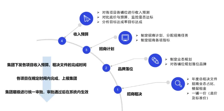 在招商管控方面,系統實現了租金預測、租決文件制定、招商指標設定的閉環管理,為租金收益預期提供了有力保障。這一成果不僅提升了招商管理的科學性,還有效降低了經營風險。
