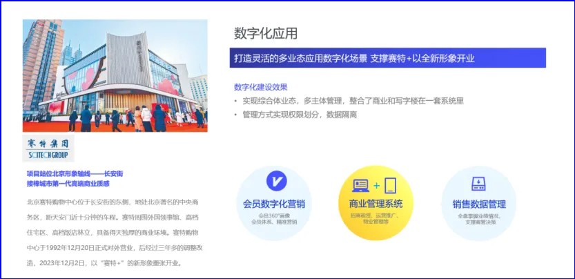 ?多業(yè)態(tài)整合與靈活管理?:靈活的多業(yè)態(tài)應(yīng)用數(shù)字化場景將商業(yè)和寫字樓整合在一套系統(tǒng)內(nèi),同時實(shí)現(xiàn)了權(quán)限劃分和數(shù)據(jù)隔離。這一創(chuàng)新舉措不僅提升了管理效率,還為賽特+的業(yè)務(wù)拓展提供了更多可能性。