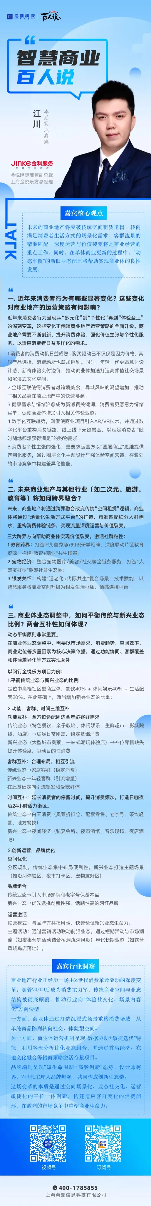 智慧商業百人說 | 金科服務江川:突破傳統租賃邏輯,解讀商業地產客群、業態、場景更新策略