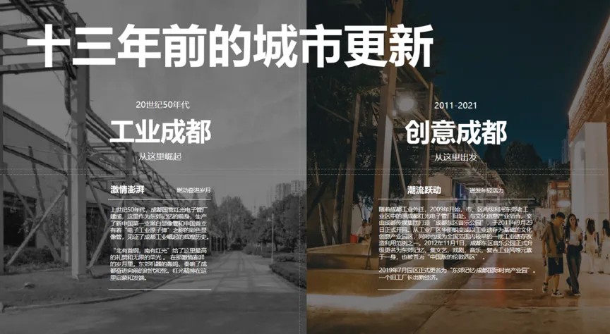 熊老師指出,為擺脫發(fā)展瓶頸,2020年10月,成都傳媒集團啟動實施東郊記憶園區(qū)運營機制轉(zhuǎn)換改革工作。2021年5月,業(yè)主方在西南聯(lián)交所以“整體出租+公開掛牌+進場交易+綜合評審”方式,引入專業(yè)文創(chuàng)園區(qū)運營機構(gòu)成都東方正火文化傳媒有限公司,于當(dāng)年7月正式交棒運營。如今的東郊記憶已經(jīng)從制造工廠成為時尚工場。