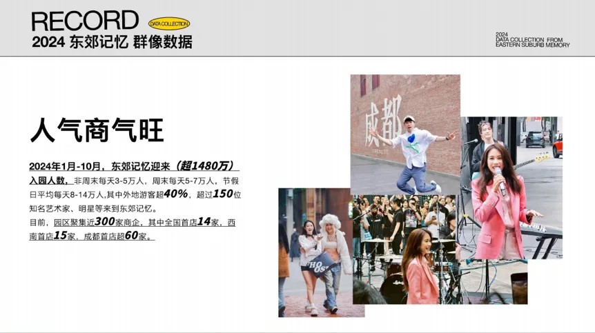 與此同時,要向年輕人學(xué)習(xí),了解年輕人,向年輕人學(xué)習(xí),才能把握趨勢,持續(xù)創(chuàng)新。通過AI、智聯(lián)體、機器人,不斷加強科技化,國際化,不斷提供年輕人喜歡的音樂現(xiàn)場、文化戲劇等內(nèi)容。隨后,他還分享了東郊記憶的群像數(shù)據(jù)和消費者畫像,通過對消費者畫像和趨勢的深入分析,東郊記憶能夠精準把握市場需求,不斷調(diào)整和優(yōu)化園區(qū)的商業(yè)布局和服務(wù)內(nèi)容,以滿足消費者的多元化需求。