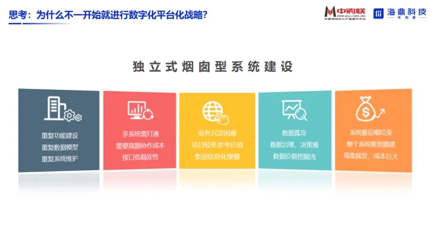 除此之外,戰(zhàn)略問題、整合問題、組織問題、成本問題一直是困擾數(shù)字化戰(zhàn)略與規(guī)劃常見的問題。宋老師表示,在戰(zhàn)略規(guī)劃問題上,需要以業(yè)務(wù)視角,通過業(yè)務(wù)架構(gòu)決定產(chǎn)品架構(gòu);在整合問題上,通常會遇到:技術(shù)架構(gòu)、流程、數(shù)據(jù)、人員能力、組織適配,如技術(shù)架構(gòu)在整合問題上可采用中臺化解決,印力商置就是采用數(shù)據(jù)中臺的手段,以統(tǒng)一數(shù)據(jù)標準、統(tǒng)一數(shù)據(jù)服務(wù)、統(tǒng)一數(shù)據(jù)資產(chǎn)管理。在組織問題上,管理的問題則要從管理上解決,系統(tǒng)不是萬能的,系統(tǒng)是手段,管理是目標。